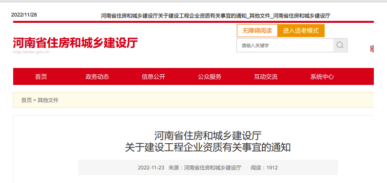 河南省住房和城鄉建設廳 關于建設工程企業資質有關事宜的通知